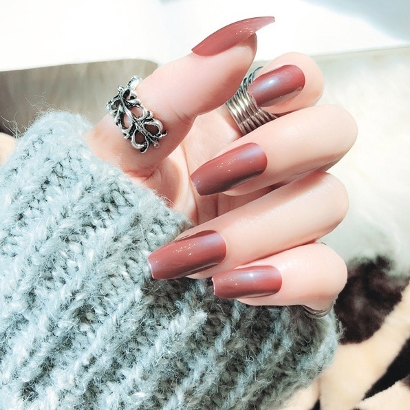 24pcs Nude Pink Pure Color Coffin Nails False Nail Full Cover Flat