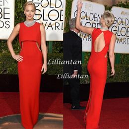 Jennifer Lawrence Red Cut Out Open Back Prom Dress 2016 Golden Globe