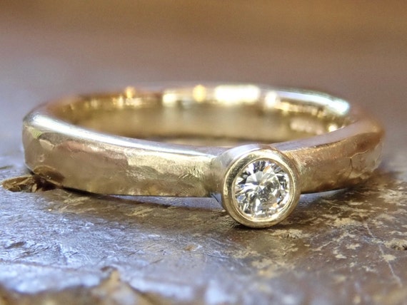 Hammered Band Engagement Ring Hand Made In The Uk
