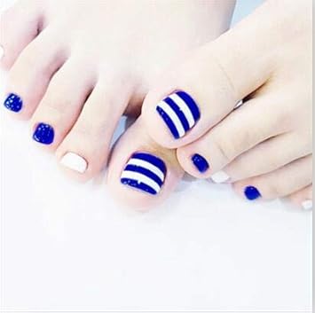 Buy Homely 24pcs Set Summer Blue White Toes False Nails Heart