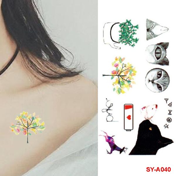 Waterproof Temporary Tattoo Sticker Colorful Tree Cartoonanimal Deer Lucky Cat Fish Fake Tattoo Body Finger Art Men Women Unique Name Tattoos A Tattoo