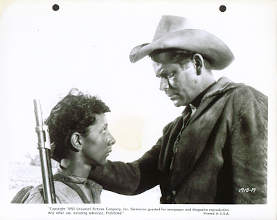 He is aided by a young Mexican boy (Marc Cavell), who knows Glenn is no coward (as if) and by Beth Anders (beautiful Julia Adams), who comes round to that view. Chill Wills, splendid as a one-armed town elder John Gage, also comes to see Glenn as heroic but only at the very end.